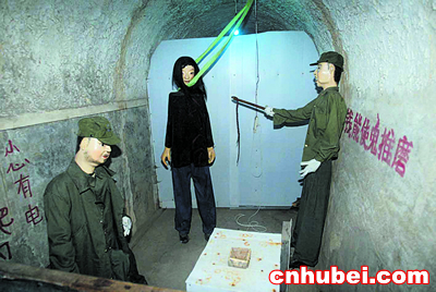 記者看到,原“幽靈城”內(nèi)的閻王、怨婦鬼、棺材鬼等,與眾多革命烈士比肩而立。一位女“革命烈士”受“老虎凳”刑,后面的墻上寫(xiě)著“閻王”二字;可愛(ài)又堅(jiān)強(qiáng)的革命小戰(zhàn)士———“小蘿卜頭”后面,寫(xiě)著“祝君發(fā)財(cái)”等字樣。