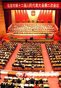 二月二十一日,北京市十二屆人大二次會議在北京會議中心閉幕,大會選舉王岐山為北京市市長,并表決通過政府工作報(bào)告等六項(xiàng)決議。中新社記者:張宇
