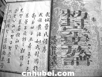 記者日前在荊州區(qū)一家名為“荊寶齋”的古玩店看到了裝在刻有“封宗氏圣族譜”舊盒里的這套線裝9冊古書,每冊封面上均印有《武城曾氏重修族譜》字樣,書中除詳盡的文字介紹外,還配有精美的插圖和加蓋的各種印章,其中一長形印章上刻有“忠謀堂總局核修”字樣。據(jù)荊州博物館有關(guān)專家認(rèn)定,此套書印刷時間在清末或民國初年。