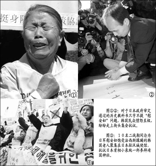 日本文部省2002年4月9日審定通過《最新日本史》教科書,這本由極端民主主義者編纂,于2003年8月開始在高中歷史課教學(xué)中實(shí)施的歷史教科書,對(duì)日本侵略者的暴行及強(qiáng)迫包括韓國婦女在內(nèi)的廣大亞洲婦女充當(dāng)日本侵略軍“慰安婦”的暴行避而不提。因此,《最新日本史》一經(jīng)出臺(tái),立即引起了韓國各方的嚴(yán)重抗議。