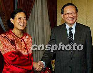 中國國務(wù)委員唐家璇,二月二十五日在北京會見泰王國瑪哈扎克里·詩琳通公主。中新社記者:鄭萍萍