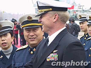 據(jù)悉,“藍嶺”號指揮艦訪滬期間,威拉德一行拜會了海軍東海艦隊司令員趙國鈞中將和上海市副市長馮國勤,美艦官兵參觀了中國自行研制的導彈護衛(wèi)艦,游覽了上海市容,中美海軍官兵還舉行了軍樂表演交流和籃球友誼比賽等一系列聯(lián)誼活動。