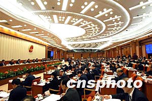 十屆全國人大常委會第七次會議二月二十九日在北京閉幕,會議表決通過了十屆人大二次會議議程草案、主席團(tuán)和秘書長名單草案等。中新社記者:鄭萍萍