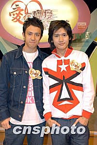 樂壇組合Boy'Z兩名成員關智斌(Kenny)、張致恒(Steven)(右起)3月2日出席香港電臺戲劇節(jié)目《愛在瘟疫蔓延時》啟播典禮。作者:鄧慶樂