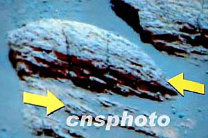 美國國家宇航局2日展示了機遇號火星探測車拍攝的火星上巖石曾被水浸泡而改變了紋理的照片。作者:余東暉