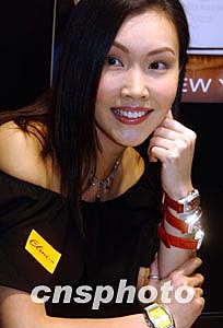 勞倫斯珠寶首飾公司三月三日在香港舉行的國(guó)際珠寶展上,首度推出全新ELINI腕表系列產(chǎn)品。圖為香港名模展示新款腕表系列產(chǎn)品。作者:錢(qián)興強(qiáng)