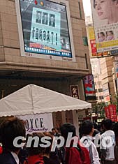 香港立法會(huì)議員李柱銘等人三月七日從美國(guó)返港,眾多市民高舉標(biāo)語(yǔ)在機(jī)場(chǎng)示威抨擊,反對(duì)李柱明赴美出席聽(tīng)證會(huì)。圖為在時(shí)代廣場(chǎng)眾多市民觀看熒屏播放的有關(guān)新聞。作者:錢(qián)興強(qiáng)