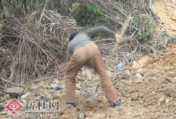 這一情況被反饋給負責(zé)管轄這一帶的南寧市興寧公安分局腰塘派出所。干警隨即前往現(xiàn)場查看,從外觀上看,深埋雞爪的地方的確有翻挖過的痕跡,而且原來在附近的兩個大土包不見了。由于地下深埋的東西涉嫌疫情,派出所在安排人員看守現(xiàn)場后,將情況反映給檢驗檢疫部門。