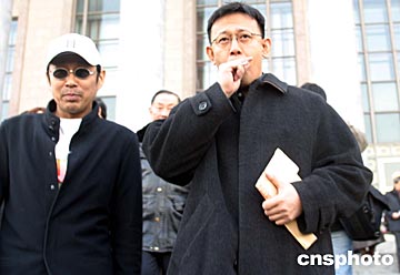 全國政協(xié)十屆二次會議三月三日在北京人大會堂開幕,全國政協(xié)委員、著名電影演員姜文(右)和陳道明參加大會。中新社記者:張勤