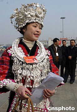 圖:少數(shù)民族代表盛裝出席人大會議閉幕式