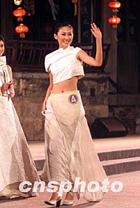 三月十五日晚,“古鎮(zhèn)西塘”2004年國(guó)際旅游小姐大賽中國(guó)區(qū)總決賽在浙江西塘落幕,來(lái)自長(zhǎng)春的九號(hào)選手鈔俊男獲得大賽中國(guó)區(qū)總決賽冠軍。中新社記者:盛佳鵬