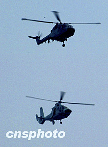 中法直升機在三月十六日的中法聯(lián)合軍事演習(xí)中進(jìn)行編隊?wèi)?zhàn)術(shù)演練。中新社記者:宋吉河