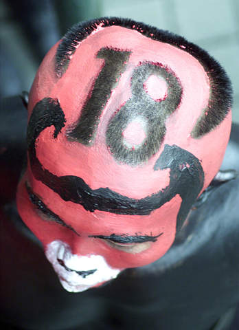 中新網(wǎng)3月17日電 印尼民主斗爭黨的一名支持者16日在東爪哇的該黨集會上展示自己的發(fā)型。由現(xiàn)總統(tǒng)梅加瓦蒂領(lǐng)導的印尼民主斗爭黨是該國最大的政黨。24個政黨將在4月5日爭奪550個議會席位。