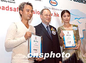 歌星陳慧琳、李克勤3月18日在香港出席《道路安全愿景暨標志創(chuàng)作比賽》記者會,陳慧琳、李克勤獲委任為「道路安全愿景大使」,將協(xié)助推廣道路安全信息,運輸署署長霍文向兩位頒發(fā)委任狀。作者:鄧慶樂