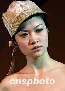 三月二十三日,在香港會(huì)展中心開(kāi)幕的“2004香港國(guó)際春季時(shí)裝材料展”上,設(shè)計(jì)師推出的“迷彩”時(shí)裝帽別具特色。中新社傳真 錢興強(qiáng) 攝