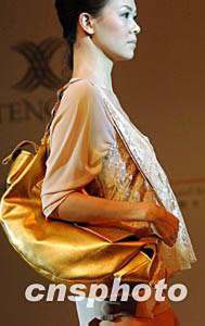 2004香港國(guó)際春季時(shí)裝材料展三月二十三日在香港會(huì)展中心開(kāi)幕,展覽上設(shè)計(jì)師推出不同款式女士時(shí)尚手袋。中新社傳真 錢興強(qiáng) 攝