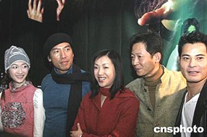 三月二十三日,新片《天黑請閉眼》在北京舉行媒體見面會。該片主要演員李小冉、張耀揚、吳倩蓮、王志文、黃智賢(從左到右)出席見面會。此片由拍攝過多部恐怖片的內(nèi)地導(dǎo)演阿甘執(zhí)導(dǎo),將在四月一日愚人節(jié)期間上映。作者:高遠