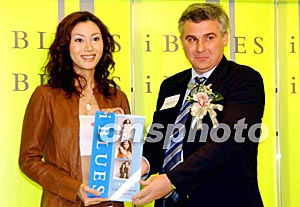 香港明星李嘉欣3月30日在太古廣場出席“iBlues 2004春夏時裝匯演”, 獲得大會頒發(fā)“iBlues Cool & Chic”大獎。圖為意大利商務專員Carlo Angelo Bocchi向李嘉欣(左)頒獎。作者:洪少葵