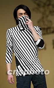 EAGLEPTY休閑裝發(fā)布會(huì)三月三十一日在北京國(guó)際時(shí)裝周上舉行,模特展示一款設(shè)計(jì)簡(jiǎn)練卻充滿前衛(wèi)風(fēng)格的設(shè)計(jì)。中新社記者:毛建軍