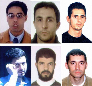 西班牙內(nèi)政部長(zhǎng)阿賽比斯31日將這6位爆炸嫌疑犯的照片發(fā)布在媒體上,希望人們能夠進(jìn)一步指證他們的犯罪經(jīng)歷。爆炸案主要嫌疑犯共有6人,其中5名摩洛哥人,1名突尼斯人。