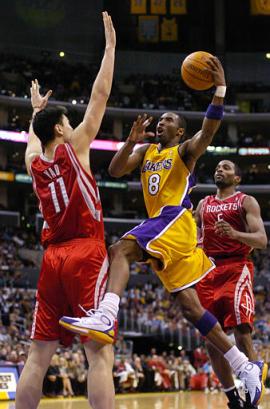 第三節(jié)以后的比賽中,姚明沒有得分,湖人在科比的帶領(lǐng)下,不斷擴(kuò)大領(lǐng)先優(yōu)勢(shì),最終,火箭客場(chǎng)83-95負(fù)于湖人。