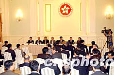 為使香港社會(huì)更多了解全國人大常委會(huì)就《基本法》附件一第七條和附件二第三條的解釋,香港特區(qū)政府和中央駐港聯(lián)絡(luò)辦公室,邀請(qǐng)全國人大常委會(huì)喬曉陽副秘書長(zhǎng)、全國人大常委會(huì)法律工作委員會(huì)李飛副主任、國務(wù)院港澳事務(wù)辦公室徐澤副主任,專程到港出席座談會(huì),聽取各界人士對(duì)香港政制發(fā)展的建議。圖為4月7日下午在香港禮賓府舉行的香港政制發(fā)展座談會(huì)。作者:洪少葵