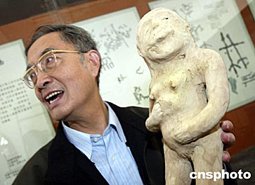 正在籌備性文化博物館開展儀式的劉達臨教授,四月十二日在江蘇同里鎮(zhèn)首次展示一尊新石器時代的陶制女神像。據(jù)劉教授介紹,這是目前中國發(fā)現(xiàn)最早的性文化雕塑,號稱“中國的維納斯女神”。從上海搬遷至同里的性文化博物館正在千年古鎮(zhèn)同里緊張籌備,將于本月十八日正式開館。中新社記者:毛建軍
