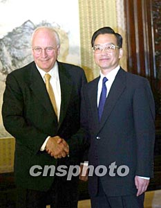 溫家寶說:“歡迎您,切尼副總統(tǒng)!
