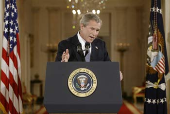 布什在講話中警告薩德爾必須解散他的武裝,并對針對他的指控做出回應(yīng)。薩德爾目前正藏身在伊拉克某地,但他不時發(fā)出信息,呼吁他的支持者抵抗美軍占領(lǐng)。