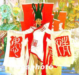 2004年4月12日晚上,在第三屆中國河南國際投資貿(mào)易洽談會開幕式大型文藝晚會上,一組根據(jù)中原歷史、歷史文物設(shè)計的時裝,給觀眾留下了深刻印象。馬健 攝