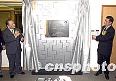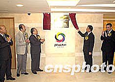 圖為澳門特區(qū)行政長官何厚鏵為「第四屆東亞運動會澳門組委會總部」新大樓揭牌。