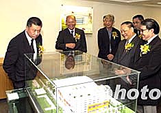 圖為澳門特區(qū)行政長官何厚鏵、中央駐澳門特區(qū)聯(lián)絡(luò)辦主任白志健等在新總部參觀第四屆東亞運動會場館模型。