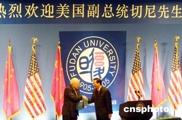 第一次訪問(wèn)上海的切尼被邀請(qǐng)?jiān)趶?fù)旦大學(xué)發(fā)表演講。他說(shuō),中國(guó)在近幾十年來(lái)取得了非常矚目的成就。雖然五十年前,美中兩國(guó)曾是敵人,當(dāng)時(shí)彼此都視對(duì)方為重大的威脅。但他認(rèn)為這種情況已經(jīng)發(fā)生變化,因?yàn)槿缃褚紤]到雙方的共同利益,要在世界發(fā)展和平與穩(wěn)定,美中在很多問(wèn)題上都共同合作。