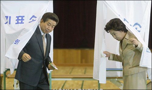 與夫人權(quán)良淑女士一同投票的盧武鉉總統(tǒng)還流露自己的感想說“今天是久違了的出門,她(權(quán)女士)為今天的出門感到很高興。”