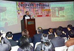 為協(xié)助香港時裝批發(fā)業(yè)了解內(nèi)地的最新營商環(huán)境及政策,掌握CEPA商機,深圳市羅湖區(qū)經(jīng)濟貿(mào)易局與香港生產(chǎn)力促進局四月十六日在香港舉行“香港時裝批發(fā)行業(yè)如何拓展內(nèi)地市場”研討會。圖為羅湖區(qū)經(jīng)濟貿(mào)易局局長曹坤華在會上發(fā)言。作者:錢興強