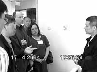 4月17日上午10點,美國聯(lián)邦調(diào)查局駐華聯(lián)絡(luò)官威廉、美國移民局駐華事務(wù)官瞿建玲來到東城區(qū)看守所,參觀、了解關(guān)押情況?吹接嗾駯|和其他犯罪嫌疑人一樣坐在地上,威廉叫他站起來走一走,并和他有這樣一段對話: