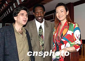 旅美華裔歌手張妮可(右),將在四月二十四日NBA季后賽休斯頓火箭隊(duì)與洛杉磯湖人隊(duì)的比賽中獻(xiàn)唱自己的第一首英文歌曲《姚明之歌》,祝愿姚明表現(xiàn)卓著。美東時間四月二十二日中午,張妮可在紐約與這首歌的共同作曲者貝林(左)和郝斯頓(中)向媒體宣布了這個消息。作者:龔文謨