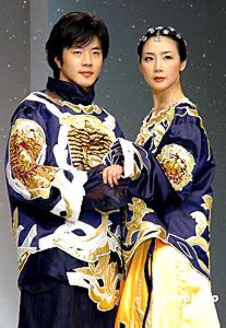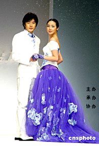 2004年4月22日,韓國(guó)服飾設(shè)計(jì)大師ANDREKIM的服裝發(fā)布會(huì)在上海舉行。權(quán)相宇與崔智友T臺(tái)上演藝?yán)寺矍椤?楊明靜 攝