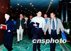 四月二十三日下午,北京市召開各醫(yī)院院長(zhǎng)會(huì)通報(bào)SARS疫情,布置預(yù)防措施。市衛(wèi)生局局長(zhǎng)金大鵬表示,北京市可以控制此次SARS疫情。中新社記者:王麗南