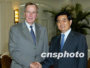 中新社博鰲四月二十三日電(記者 阮煜琳 關向東 王辛莉)中國國家主席胡錦濤二十三日下午在海南博鰲會見了前來參加博鰲亞洲論壇二OO四年年會的美國前總統(tǒng)喬治·布什,并表示,我們愿同美方一道,牢牢把握中美關系大局,加強交往和合作,妥善處理兩國關系中的問題,推動中美關系繼續(xù)穩(wěn)定發(fā)展。