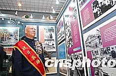 為紀(jì)念解放軍東海艦隊(duì)成立五十五周年,寧波市各階籌款數(shù)百萬(wàn)元為艦隊(duì)建起了一座現(xiàn)代化的軍史館。五十五年前的4月23日,東海艦隊(duì)前身——解放軍華東軍區(qū)海軍在江蘇泰州白馬廟成立。圖為見(jiàn)證艦隊(duì)光輝歷程的戰(zhàn)斗英雄王維福在軍史館參觀。作者:鐘魁潤(rùn)