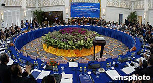 博鰲亞洲論壇之重頭戲——“中國和平崛起與經(jīng)濟全球化”圓桌會議四月二十五日繼續(xù)在博鰲金海岸溫泉大酒店舉行,來自世界各國智囊機構(gòu)的重量級人物就“中國的和平崛起對國際社會意味著什么”的話題展開討論。中新社記者:鄭萍萍