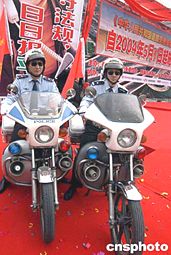 《中華人民共和國道路交通安全法》五月一日正式實(shí)施。四月二十五日,十余萬北京民眾走上街頭宣傳這一法規(guī)。威武的警員成為龐大宣傳隊(duì)伍中最為吸引人目光的焦點(diǎn)。中新社記者:任海霞