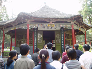 武侯祠的另一大景觀就是排列有序的400余塊碑碣石刻,在全國諸多武侯祠中當屬首位,被譽為“臥龍碑林”。其中岳飛手書的《前后出師表》碑,可稱得上是“三絕”碑。據(jù)碑跋稱,宋紹興八年(1138年),岳飛遇雨夜宿臥龍崗,感慨萬千,揮淚手書《出師表》,以抒胸臆。所謂“三絕”,一為文章絕,出師表為千載名篇;二為書法絕,岳飛的書法可謂蒼勁峭拔,龍飛蛇騰,尤見忠武之氣流于筆端;三為刻工絕,宛如手書。三者結(jié)合,可謂珠聯(lián)璧合,相得益彰。