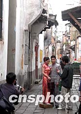 一對(duì)身著中式傳統(tǒng)服裝的青年男女在福州老城區(qū)“三坊七巷”里拍攝婚紗照。時(shí)下,越來越多的福州年輕人熱衷懷舊風(fēng)格的婚紗照。作者:鄭祚聲