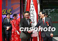 四月三十日,中關(guān)村科技園區(qū)海淀園管理委員會正式掛牌成立。十五年前,海淀科技園區(qū)的誕生曾做為中國管理體制改革的一個(gè)創(chuàng)舉,而在中國高科技發(fā)展的進(jìn)程中留下了濃墨重彩的一筆。十五年后,海淀管委會的成立更是標(biāo)志著中國建設(shè)創(chuàng)新型政府、服務(wù)型政府的體現(xiàn)。北京市副市長范伯元(左)和海淀區(qū)委書記潭維克(右)為海淀園管委會成立揭牌。中新社記者:張勤