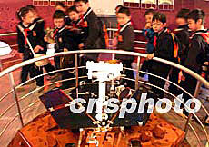 四月三十日,北京小學(xué)生正在中國科技館觀看由美國國家航空航天局(NASA)提供的“機(jī)遇號”火星車二分之一模型。這是“機(jī)遇號”火星車二分之一模型首次在中國公開展出。該模型由NASA制作,全世界僅有兩個。該模型與火星車實(shí)物在制作材料相同,但個頭較小,它也沒有全身武裝的科學(xué)探測儀器。中新社記者:張煒