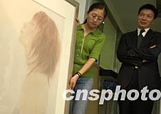 北京華辰拍賣有限公司董事長兼總經(jīng)理甘學(xué)軍(右一),將在五月春季拍賣中推出一批中國當代年青藝術(shù)家的精品,這批新生代的佳作與當今世界藝術(shù)潮流齊頭并進,極具收藏欣賞和升值價值。中新社記者:賈國榮