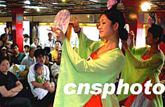 五一長假期間,參加“金廈海域游”的游客一邊乘船游覽金廈海域兩岸風光,一邊觀賞民間歌舞表演,其樂融融。作者:劉可耕
