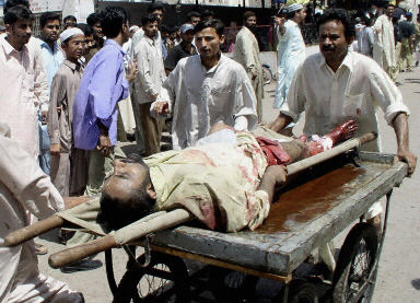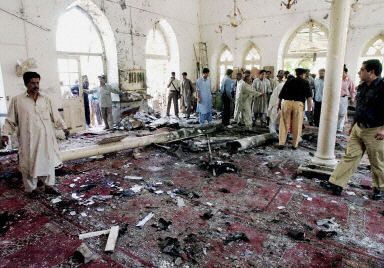 中新網(wǎng)5月7日電 巴基斯坦南部港口城市卡拉奇的一座清真寺7日遭遇炸彈爆炸,目前死亡人數(shù)上升至13人,另有大約50人受傷。當天,巴總統(tǒng)穆沙拉夫強烈譴責(zé)了此次爆炸事件。